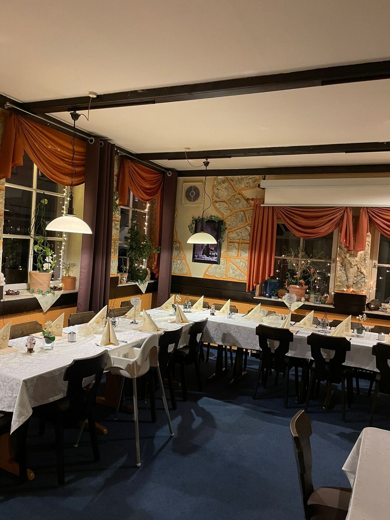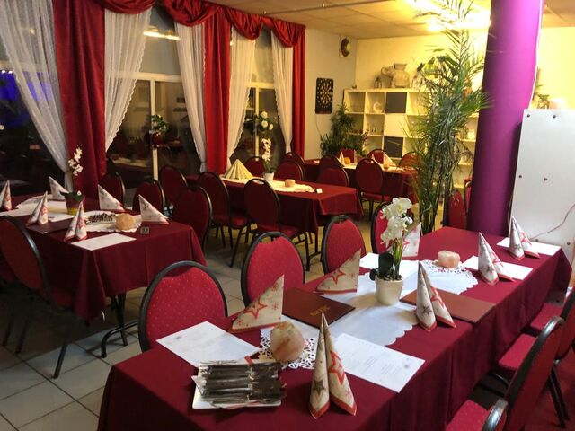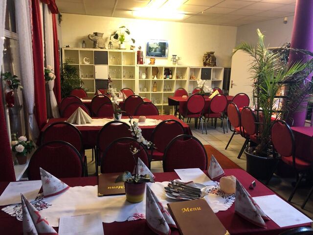 Pro Person: Hacksteak gefüllt mit Käse, Schweinefilet, Schweineschnitzel und Schweinefleischspieß, dazu Gemüse mit Sauce Hollandaise, Djuvec Reis und Pommes Frites